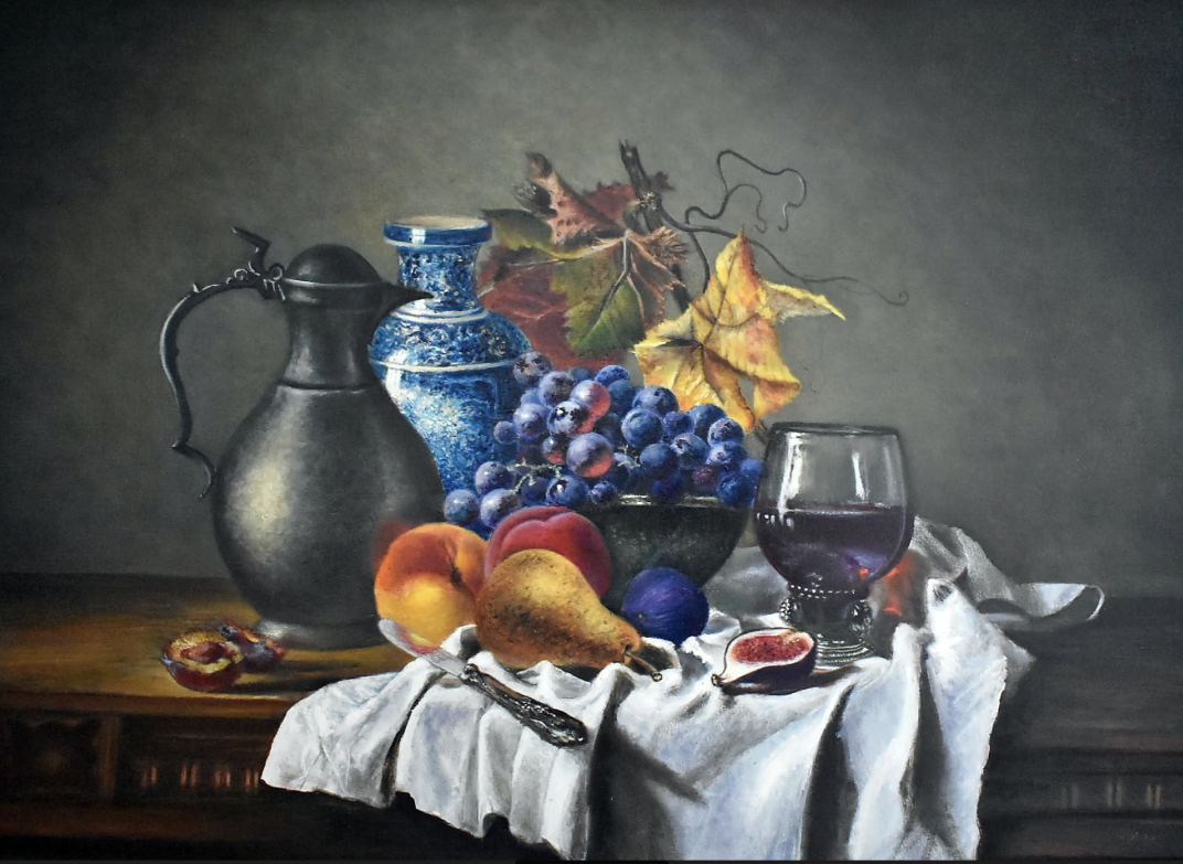 и работе в многослойной технике живописи. Пробуя себя в разных художественных ипостасях, призвание и главное воплощение своего мировоззрения Алекс нашел в голландском натюрморте, который дал творцу возможность